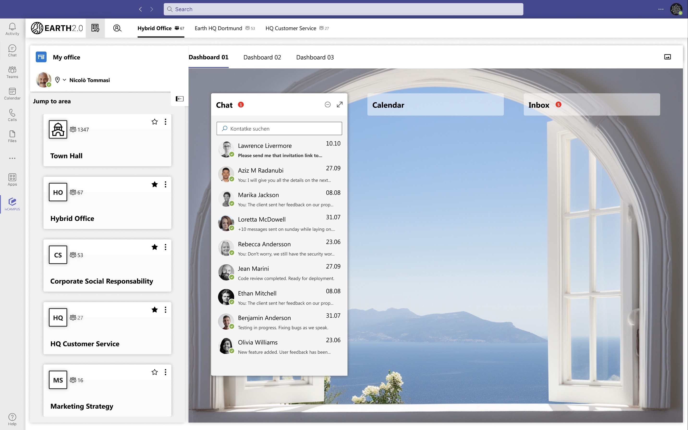 See all the meetings that take place and who’s busy working on specific projects. Chitchat with a colleague or join a meeting with one click - just like in the real office!